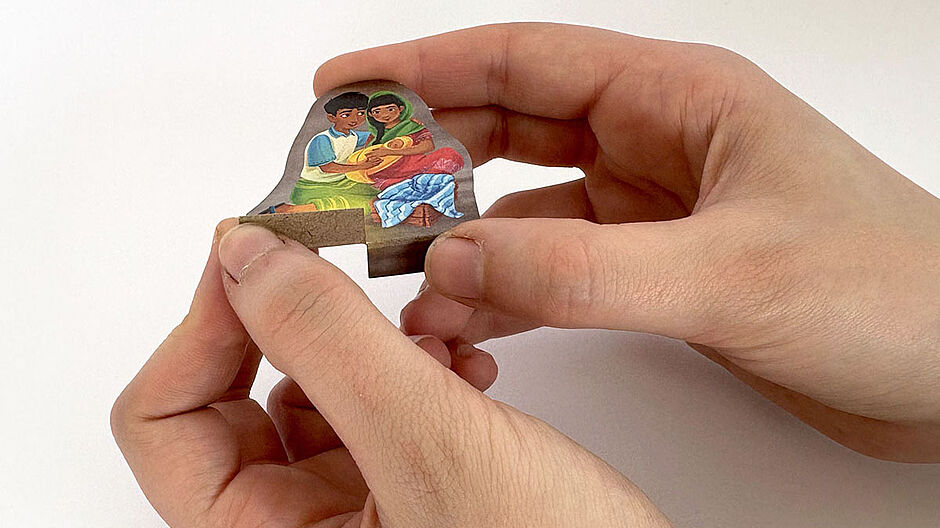 Diesen Winter reisen wir mit dem Weltmissionstag der Kinder nach Bangladesch. In der Vorlesegeschichte „Den Frieden im Herzen tragen“ spüren Rahim und seine Großmutter Amina plötzlich tiefen Frieden in ihren Herzen. Wie es dazu kommt, steht im Begleitheft zur Bastelkrippe.
