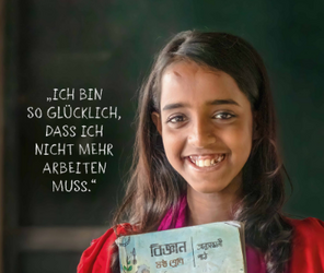 In vielen Ländern der Welt trägt das Kindermissionswerk ‚Die Sternsinger‘ mit seinen Partnerorganisationen dazu bei, Kinderarbeit zu verringern. In Bangladesch befreit die Abdur Rashid Khan Thakur Foundation (ARKTF) Kinder aus gesundheitsschädigenden Arbeitsverhältnissen und sensibilisiert Eltern, Arbeitgeber und Behörden für die Kinderrechte. Die Partnerorganisation integriert die Kinder und Jugendlichen wieder in Schulen oder vermittelt ihnen Ausbildungsplätze. So trägt sie dazu bei, den Teufelskreis aus Armut, Benachteiligung und Kinderarbeit zu durchbrechen.