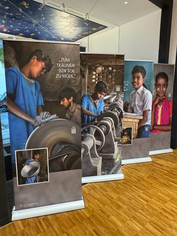 Die Ausstellung zum Thema Kinderarbeit lässt sich dank handlicher Roll-Ups gut in einer Schulaula oder einem Schulfoyer aufstellen. Zur inhaltlichen Vor- und Nachbereitung der Schülerinnen und Schüler auf die Ausstellung empfehlen wir Ihnen, unsere Materialien zu nutzen: den Film zur Sternsingeraktion mit Reporter Willi Weitzel sowie das Unterrichtsmaterial zum Thema Kinderarbeit. Gerne stellen wir Ihnen auch unser Sternsinger-Magazin (für die jüngeren Jahrgänge) und das Fachdossier zum Thema Kinderarbeit (für die älteren Jahrgänge) zur Verfügung.