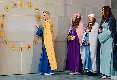Jeweils vier Sternsingerinnen und Sternsinger aus allen 27 deutschen Diözesen werden Anfang Januar im Bundeskanzleramt empfangen. Auch zur 68. Aktion Dreikönigssingen werden sie dort ihren Segen anschreiben.