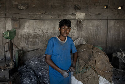 Tazim musste schwer arbeiten, bevor er von Mitarbeitenden des Sternsinger-Partners ARKTF befreit wurde. Er war zehn, als er begann, in einer Werkstatt für Aluminiumprodukte zu arbeiten. Mittlerweile kann Tazim dank der Hilfe der Sternsinger eine Schule besuchen.