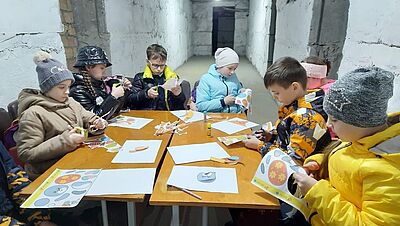 Myroslava (8) in einem Kinderzentrum der Caritas Drohobych: „Wir sind viele zu Hause. Es ist laut und manchmal schwierig. Wenn es keinen Strom gibt, wird es sehr dunkel. Im Winter ist es kalt, und wir sitzen dicht beieinander, um uns warm zu halten. Ich komme gerne ins Kinderzentrum, weil ich mich dort sicher fühle."