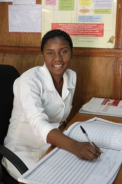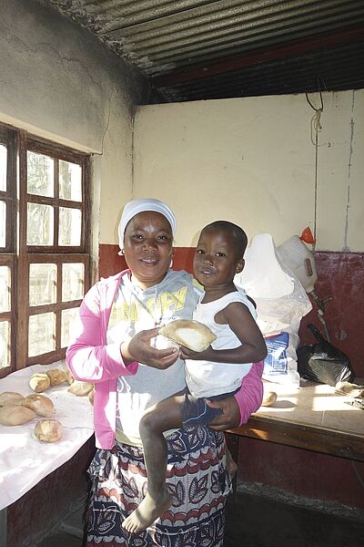 Projekt-Koordinatorin Celeste (42): „Wenn die Frauen mit dem Programm beginnen, erhalten sie jeden Monat auch Lebensmittel wie Öl, Zucker und Erdnüsse. Diese bekommen sie, bis ihr Kind ein Jahr alt ist. Das ist wichtig, damit sie durch ausgewogene Ernährung gut durch die Schwangerschaft und die ersten Monate nach der Geburt kommen.“