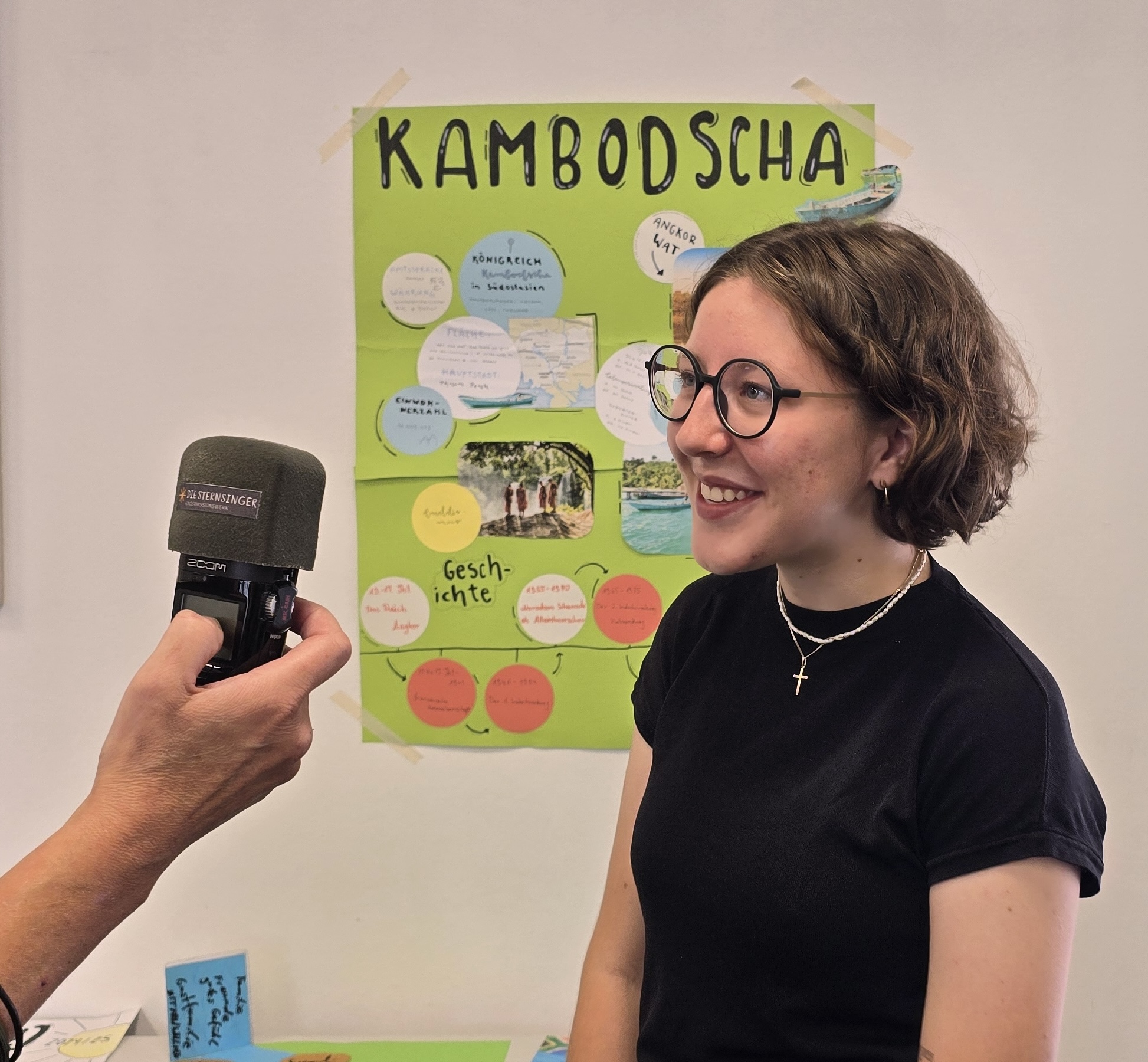 Sammlung Interviews, Transkription und Fotos Rückkehrer 2025: Ida Halmer und Michel Oeler Im Interview... Ida Halmer aus dem Erzbistum Freiburg Datei Info Dateityp: JPG Format: 1946x1800 Pixel Dateigröße: 919,9 KB © Christine Mossoux / Kindermissionswerk Downloads JPG-Datei Rückkehrerin 2025 – Ida Halmer aus dem Erzbistum Freiburg Transkription Datei Info Dateityp: DOCX Dateigröße: 21,6 KB © Urte Podszuweit / Kindermissionswerk Downloads DOCX-Datei 1_IdaHalmer 1. Stellst du dich bitte mal kurz vor? Der Brwoser unterstützt kein Abspielen von mp3. Bitte laden Sie sich die Datei hier herunter. Datei Info Dateityp: MP3 Dateigröße: 458,1 KB © Urte Podszuweit / Kindermissionswerk Downloads MP3-Datei 2_Ida Halmer 2. Ida, du bist nach Kambodscha gegangen. Was genau hast du dort gemacht, was waren deine täglichen Aufgaben? Der Brwoser unterstützt kein Abspielen von mp3. Bitte laden Sie sich die Datei hier herunter. Datei Info Dateityp: MP3 Dateigröße: 1,3 MB © Urte Podszuweit / Kindermissionswerk Downloads MP3-Datei 3_Ida Halmer 3. Kannst du die Schule einmal beschreiben, in der du im Einsatz warst? Der Brwoser unterstützt kein Abspielen von mp3. Bitte laden Sie sich die Datei hier herunter. Datei Info Dateityp: MP3 Dateigröße: 1,8 MB © Urte Podszuweit / Kindermissionswerk Downloads MP3-Datei 4_Ida Halmer 4. Das Kindermissionswerk setzt sich ja vor allem für Mädchen und Jungen ein, die eben nicht die Mittel hätten zur Schule zu gehen... Der Brwoser unterstützt kein Abspielen von mp3. Bitte laden Sie sich die Datei hier herunter. Datei Info Dateityp: MP3 Dateigröße: 1,1 MB © Urte Podszuweit / Kindermissionswerk Downloads MP3-Datei 5_Ida Halmer 5. Im Blog hast du verraten, dass dir Englisch gut geholfen hat, aber war das die einzige Sprache, die du gesprochen hast? Der Brwoser unterstützt kein Abspielen von mp3. Bitte laden Sie sich die Datei hier herunter. Datei Info Dateityp: MP3 Dateigröße: 1,5 MB © Urte Podszuweit / Kindermissionswerk Downloads MP3-Datei 6_Ida Halmer 6. Kannst du etwas auf Khmer sagen? Der Brwoser unterstützt kein Abspielen von mp3. Bitte laden Sie sich die Datei hier herunter. Datei Info Dateityp: MP3 Dateigröße: 375,5 KB © Urte Podszuweit / Kindermissionswerk Downloads MP3-Datei 7_Ida Halmer 7. Wie war das am Anfang, weg von zu Hause und rein in eine völlig neue Realität, erzähl doch mal... Der Brwoser unterstützt kein Abspielen von mp3. Bitte laden Sie sich die Datei hier herunter. Datei Info Dateityp: MP3 Dateigröße: 1,3 MB © Urte Podszuweit / Kindermissionswerk Downloads MP3-Datei 8_Ida Halmer 8. Was hat dich am meisten beeindruckt in Kambodscha? Der Brwoser unterstützt kein Abspielen von mp3. Bitte laden Sie sich die Datei hier herunter. Datei Info Dateityp: MP3 Dateigröße: 1,3 MB © Urte Podszuweit / Kindermissionswerk Downloads MP3-Datei 9_Ida Halmer 9. Größter Unterschied zwischen Deutschland und Kambodscha? Der Brwoser unterstützt kein Abspielen von mp3. Bitte laden Sie sich die Datei hier herunter. Datei Info Dateityp: MP3 Dateigröße: 1,2 MB © Urte Podszuweit / Kindermissionswerk Downloads MP3-Datei 10_Ida Halmer 10. Hat dir das Jahr gut getan? Der Brwoser unterstützt kein Abspielen von mp3. Bitte laden Sie sich die Datei hier herunter. Datei Info Dateityp: MP3 Dateigröße: 2,2 MB © Urte Podszuweit / Kindermissionswerk Downloads MP3-Datei 11_Ida Halmer. 11. Dein Abschied lief nicht wie geplant, erzähl doch mal... Der Brwoser unterstützt kein Abspielen von mp3. Bitte laden Sie sich die Datei hier herunter. Datei Info Dateityp: MP3 Dateigröße: 2,7 MB © Urte Podszuweit / Kindermissionswerk Downloads MP3-Datei 12_IdaHalmer 12. Was ist dir noch wichtig? Der Brwoser unterstützt kein Abspielen von mp3. Bitte laden Sie sich die Datei hier herunter. Datei Info Dateityp: MP3 Dateigröße: 1,5 MB © Urte Podszuweit / Kindermissionswerk Downloads MP3-Datei Im Interview... Michel Oeler aus dem Bistum Hildesheim Datei Info Dateityp: JPG Format: 2354x1535 Pixel Dateigröße: 1,0 MB © Christine Mossoux / Kindermissionswerk Downloads JPG-Datei Rückkehrer - Michel Oeler aus dem Bistum Hildesheim Transkription Datei Info Dateityp: DOCX Dateigröße: 26,5 KB © Urte Podszuweit / Kindermissionswerk Downloads DOCX-Datei 1_Michel Oeler 1. Magst du dich bitte einmal kurz vorstellen? Der Brwoser unterstützt kein Abspielen von mp3. Bitte laden Sie sich die Datei hier herunter. Datei Info Dateityp: MP3 Dateigröße: 327,1 KB © Urte Podszuweit / Kindermissionswerk Downloads MP3-Datei 2_Michel Oeler 2. Der Anfang deiner Reise lief ein bisschen holprig? Was ist passiert? Der Brwoser unterstützt kein Abspielen von mp3. Bitte laden Sie sich die Datei hier herunter. Datei Info Dateityp: MP3 Dateigröße: 1,1 MB © Urte Podszuweit / Kindermissionswerk Downloads MP3-Datei 3_Michel Oeler 3. In deinem Blog hast du geschrieben „Dieses Jahr ist eine Reise. Diese hier ist eine, die viel tiefer geht. Eine sehr persönliche, eine Art Lebensreise“. Wie war denn diese Reise? Der Brwoser unterstützt kein Abspielen von mp3. Bitte laden Sie sich die Datei hier herunter. Datei Info Dateityp: MP3 Dateigröße: 1,2 MB © Urte Podszuweit / Kindermissionswerk Downloads MP3-Datei 4_Michel Oeler 4. Worin bestanden vor Ort im Projekt deine Aufgaben? Der Brwoser unterstützt kein Abspielen von mp3. Bitte laden Sie sich die Datei hier herunter. Datei Info Dateityp: MP3 Dateigröße: 747,5 KB © Urte Podszuweit / Kindermissionswerk Downloads MP3-Datei 5_Michel Oeler 5. Du hast das Koordinierungsteam von MICANTO unterstützt. Was genau ist MICANTO? Beschreib doch mal... Der Brwoser unterstützt kein Abspielen von mp3. Bitte laden Sie sich die Datei hier herunter. Datei Info Dateityp: MP3 Dateigröße: 1,4 MB © Urte Podszuweit / Kindermissionswerk Downloads MP3-Datei 6_Michel Oeler 6. In einer Bewegung kann man ja nicht wohnen, wo hast du denn gelebt? Der Brwoser unterstützt kein Abspielen von mp3. Bitte laden Sie sich die Datei hier herunter. Datei In