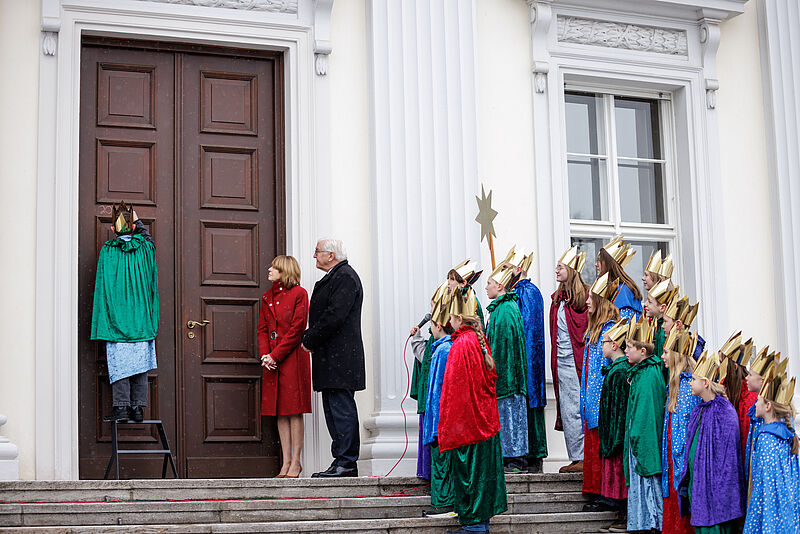 Bundespräsident Steinmeier empfing zum achten Mal Sternsingerinnen und Sternsinger in seinem Amtssitz. Er setzte damit die Tradition der Empfänge fort, die schon seine Amtsvorgänger Karl Carstens, Roman Herzog, Johannes Rau, Horst Köhler, Christian Wulff und Joachim Gauck gepflegt hatten.