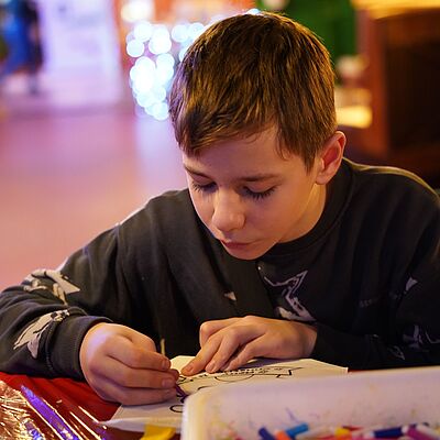 Manche Tage fühlen sich normal an, andere Tage sind beängstigend. Wenn der Strom für viele Stunden ausfällt, warten wir im Dunkeln. Es ist schwer zu lernen, wenn es kalt ist. Im Zentrum (der Caritas) fühle ich mich besser, weil es dort Licht und Wärme gibt. Ich habe Angst vor lauten Explosionen und Drohnen. Mein Herz schlägt sehr schnell, wenn ich sie höre.