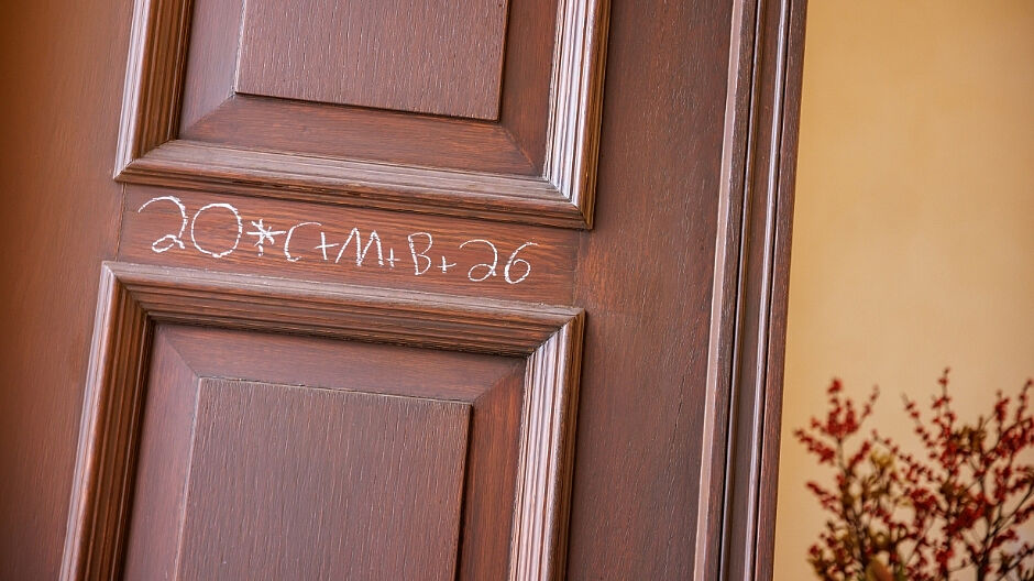 Zu Beginn des Empfangs am Dienstagvormittag klopfte Sternsinger Samuel an das große Schlossportal. „Herr Bundespräsident, die Sternsinger sind da“, läutete der 13-Jährige den Empfang ein, und Johannes (12) schrieb mit weißer Kreide den Segen an das Schlossportal. „Wir bringen den Segen, dass Gott Sie begleite, und hoffen, Sie stehen an unserer Seite für so viele Kinder in anderen Ländern, die arbeiten müssen. Das wollen wir ändern“, trug Sternsinger Timon (12) den dazu passenden Segensspruch vor.