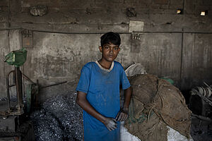Tazim musste schwer arbeiten, bevor er von Mitarbeitenden des Sternsinger-Partners ARKTF befreit wurde. Er war zehn, als er begann, in einer Werkstatt für Aluminiumprodukte zu arbeiten. Mittlerweile kann Tazim dank der Hilfe der Sternsinger eine Schule besuchen.