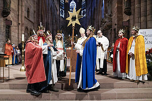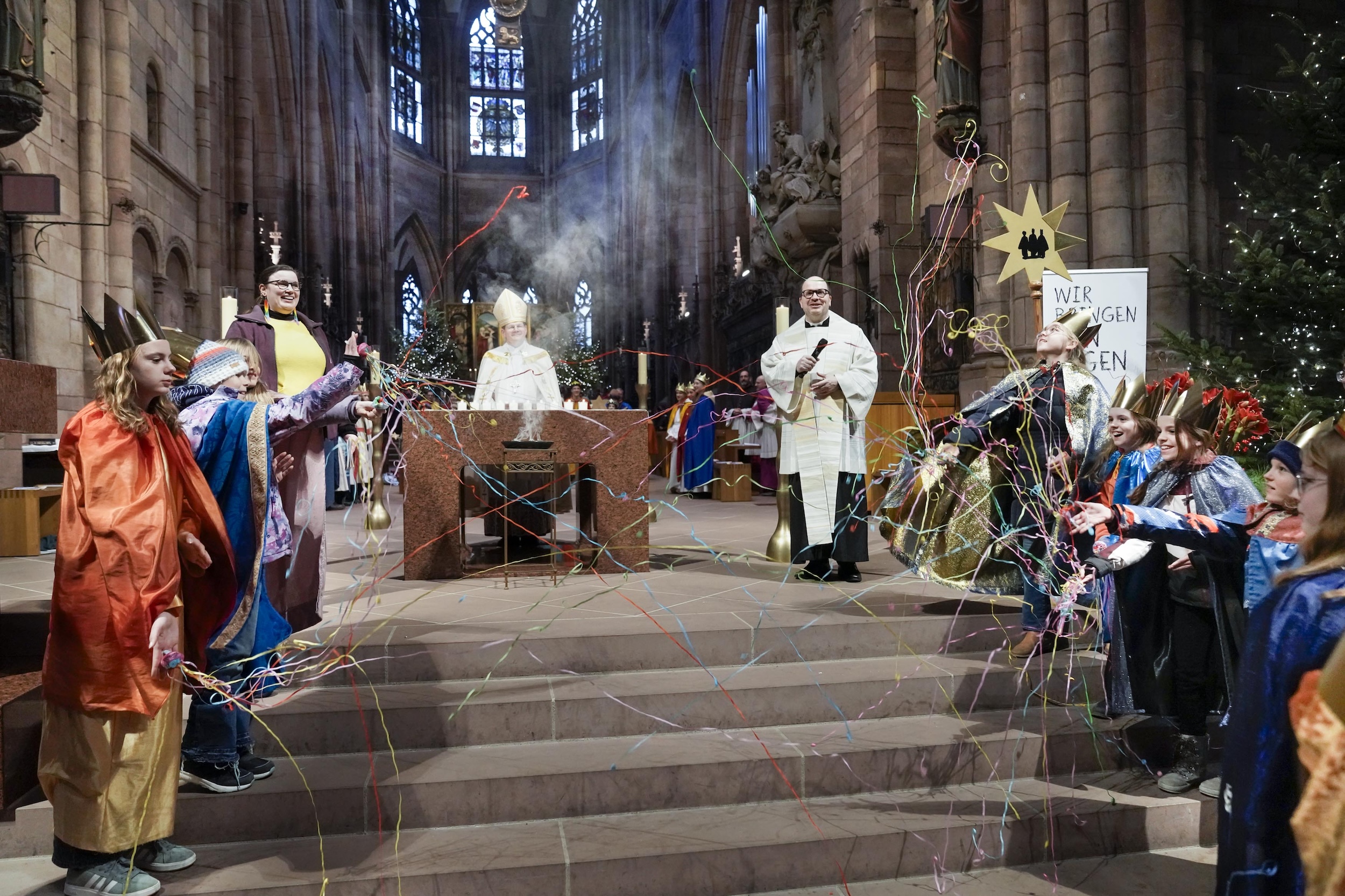 Luftschlangen im Münster: In Freiburg wurde der feierliche Auftakt-Gottesdienst zur bundesweiten Eröffnung der 68. Aktion Dreikönigssingen gefeiert.