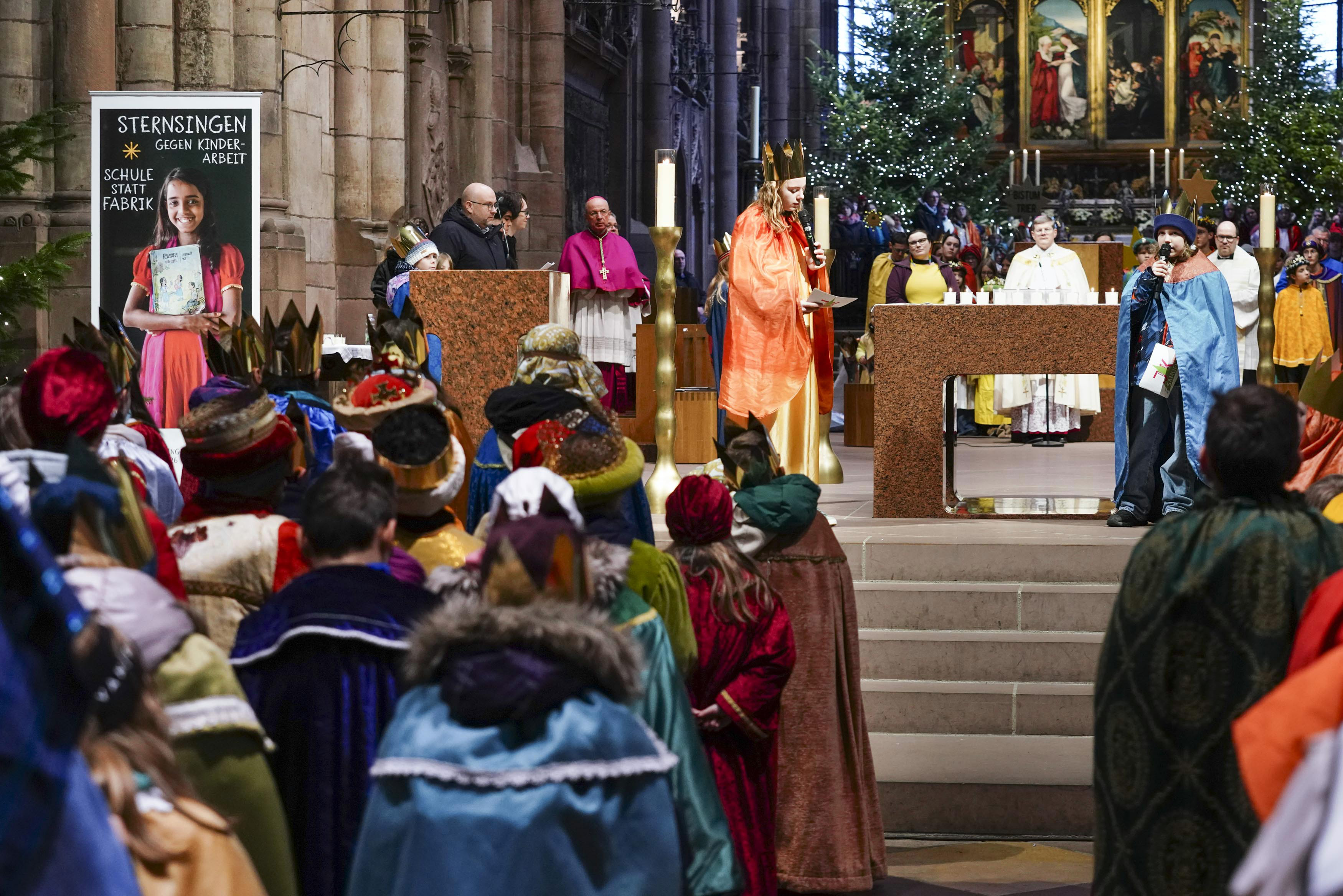 Sternsingerinnen und Sternsinger der Jugendkirche Samuel, Mannheim, haben beim feierlichen Auftakt-Gottesdienst zur bundesweiten Eröffnung der 68. Aktion Dreikönigssingen mitgewirkt.