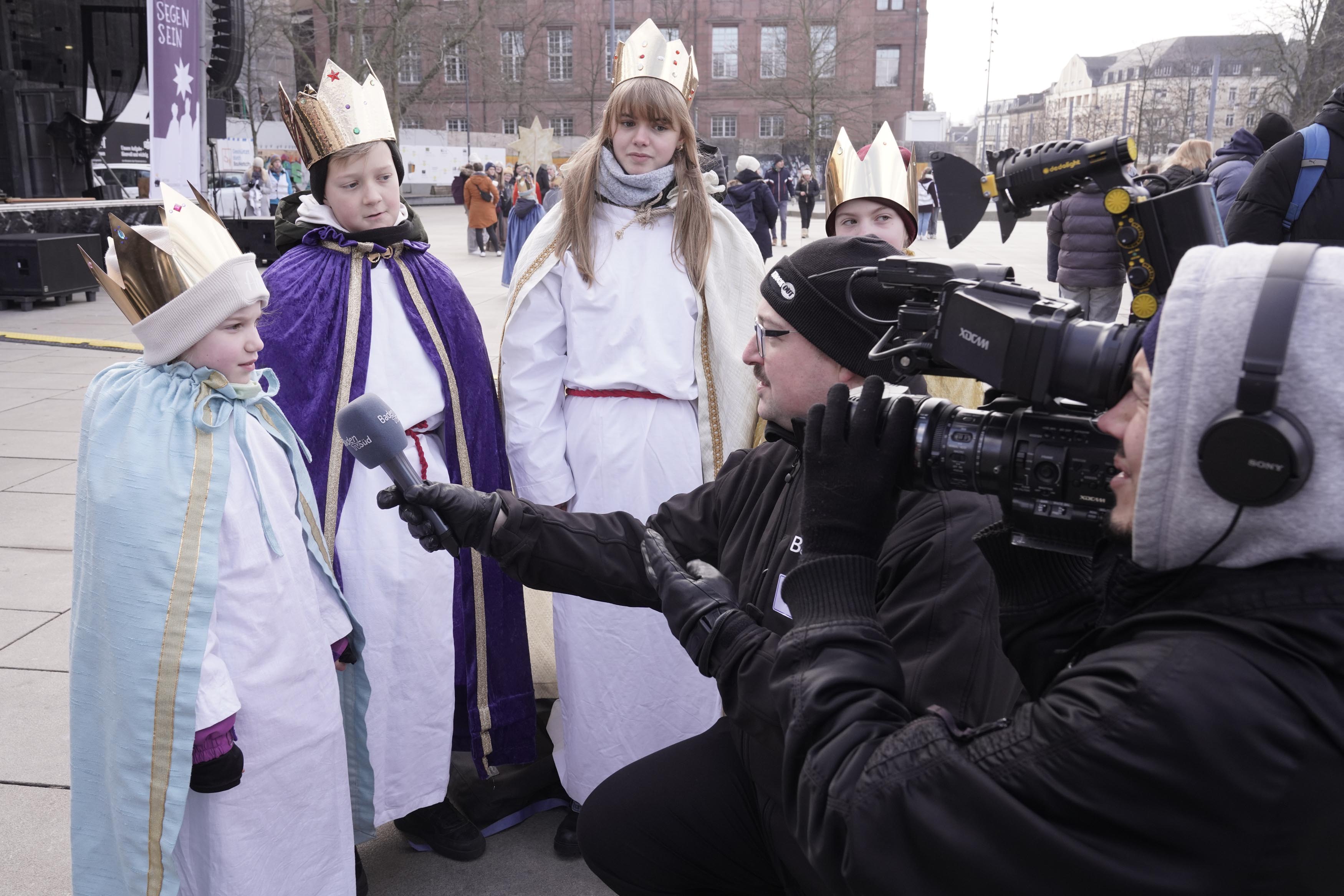 Sternsinger im Mittelpunkt: Viele Medienvertreter wollten Interviews mit den Königinnen und Königen.