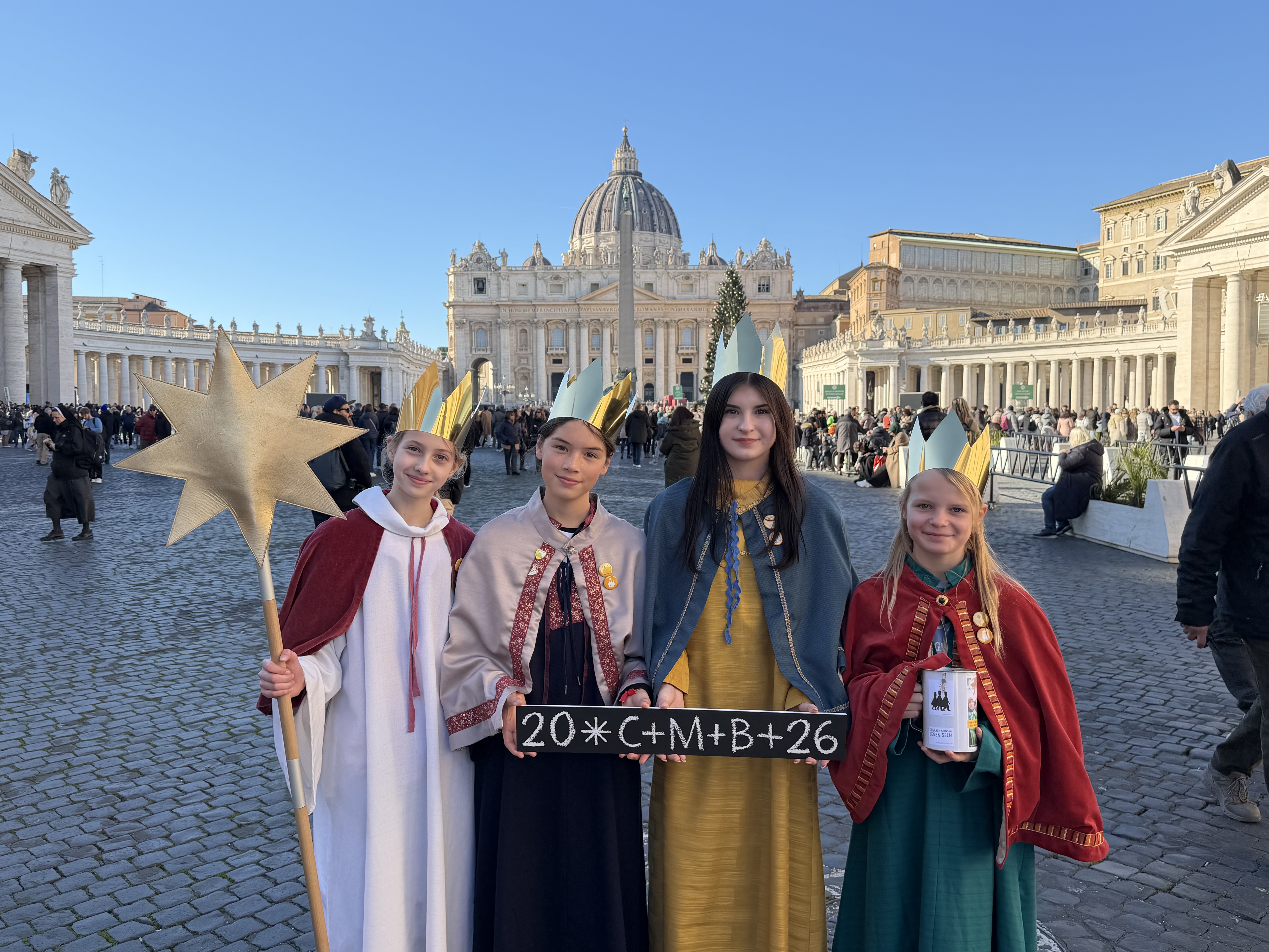 Neujahrsgottesdienst mit Papst Leo XIV. Die vier Sternsingerinnen Mia (14), Pia (10), Theresa (13) und Anna (13) aus der Pfarrei St. Franziskus in Marl (Bistum Münster) werden am Donnerstag, 1.…