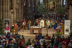Sternsingerinnen und Sternsinger der Jugendkirche Samuel, Mannheim, haben beim feierlichen Auftakt-Gottesdienst zur bundesweiten Eröffnung der 68. Aktion Dreikönigssingen mitgewirkt.
