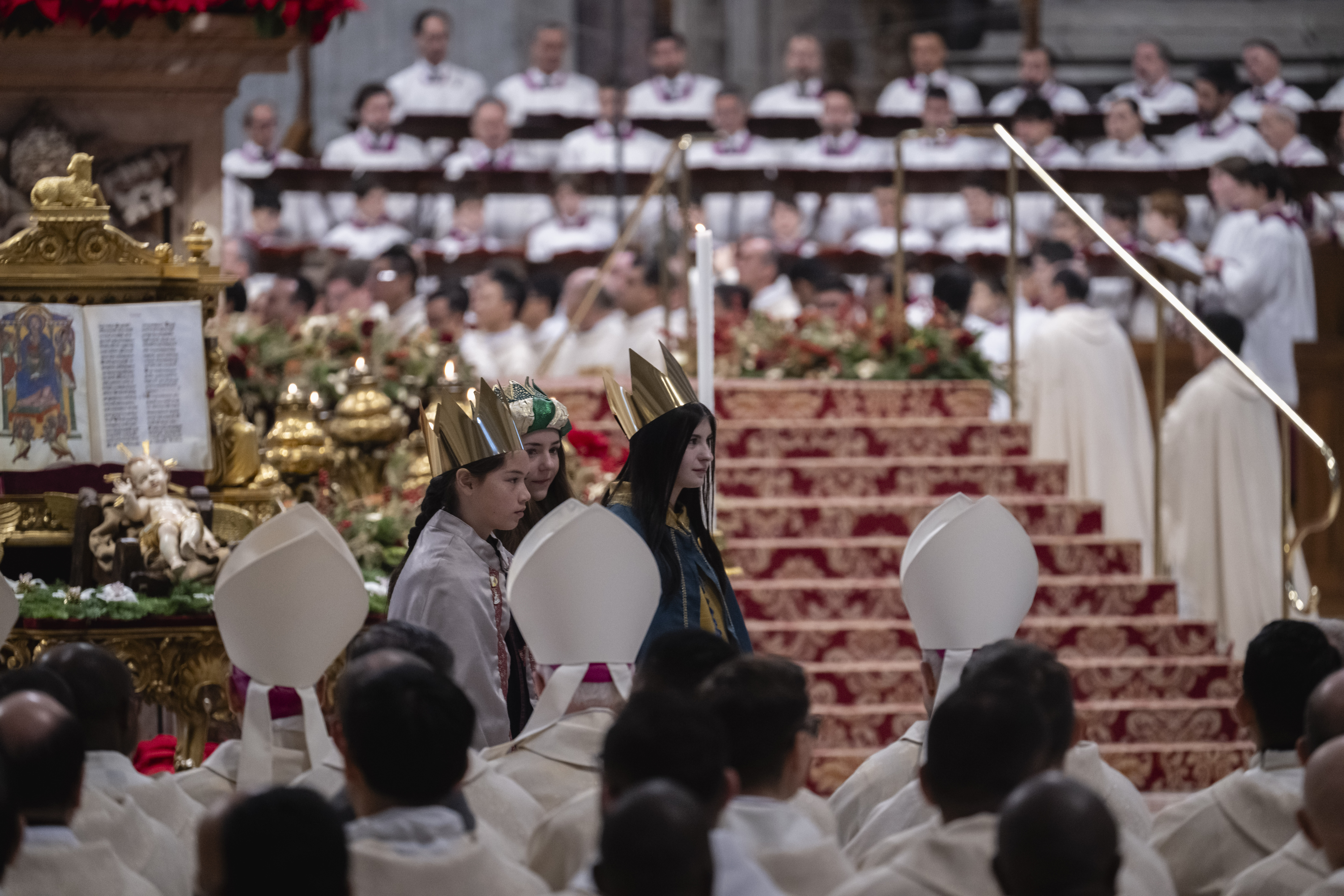 Neujahrsgottesdienst mit Papst Leo XIV. Die vier Sternsingerinnen Mia (14), Pia (10), Theresa (13) und Anna (13) aus der Pfarrei St. Franziskus in Marl (Bistum Münster) feierten am Donnerstag, 1.…